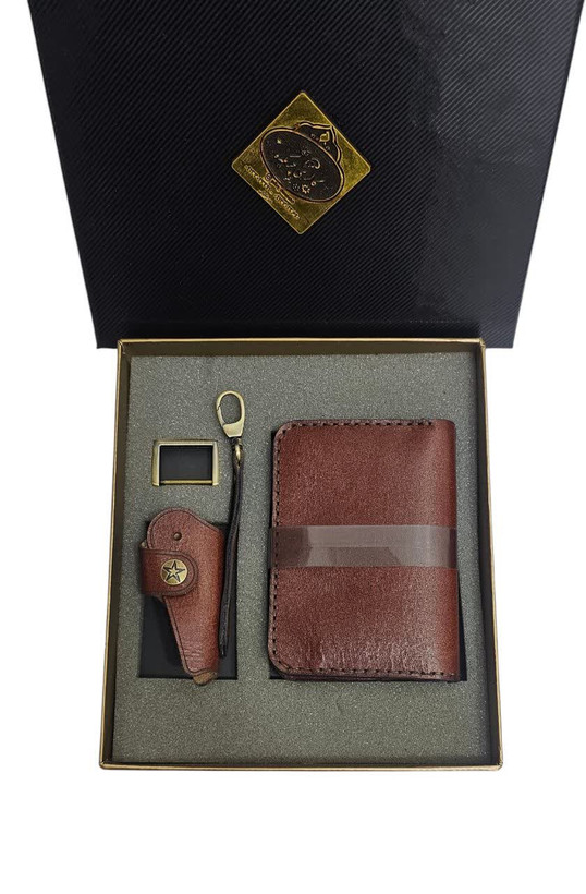 انتخابی شیک برای هدیه. این ست چرمی مردانه، ترکیبی از کاربردیبودن و زیبایی است؛ ساختهشده از چرم طبیعی با دوخت تمیز و طراحی کلاسیک. مناسب آقایانی که به جزئیات و استایل اهمیت میدهند.