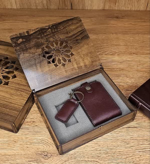 ست چرم طبیعی دو تکه.کیف کارت ساده مدل آکاردئونی به دکمه چهار پارچه باز و بسته می شود. دارای 4 جای کارت.ساخته شده از چرم طبیعی گاوی.کاملا دستدوز.