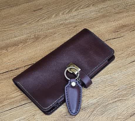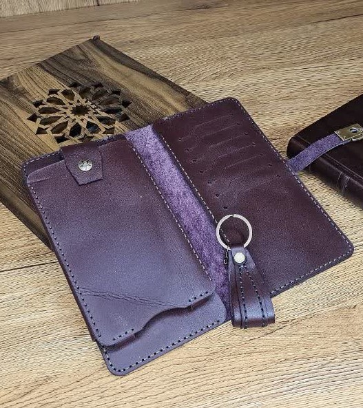 ست چرم طبیعی 2 تکه.کیف پول کتی دارای یک جای موبایل.دو جای اسکناس و 7 جای کارت بانکی و قفل نِک دار و یک سرکلیدی .کاملا دستدوز و یراق آلات رنگ ثابت.